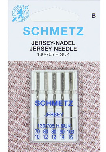 Иглы Schmetz для джерси (вязаный трикотаж). Размеры - 70,80(x2),90,100.
