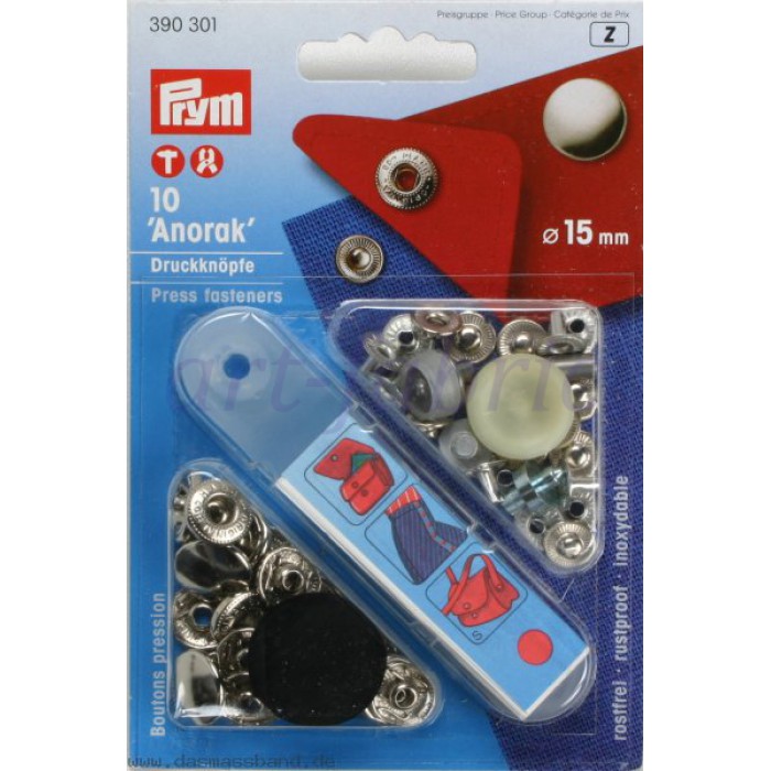 390301 Prym Кнопки "Anorak" серебристые 15мм по самой низкой цене