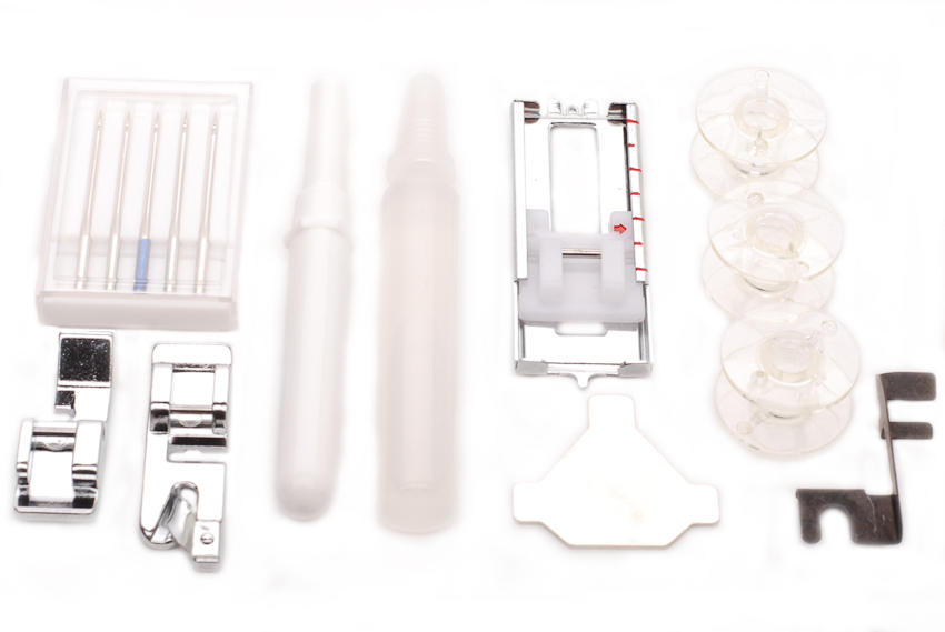 14 видов строчек (15 операций), нитевдевающее устройство, в комплекте 5 лапок, чехол жесткий. Челнок - вертикальный.