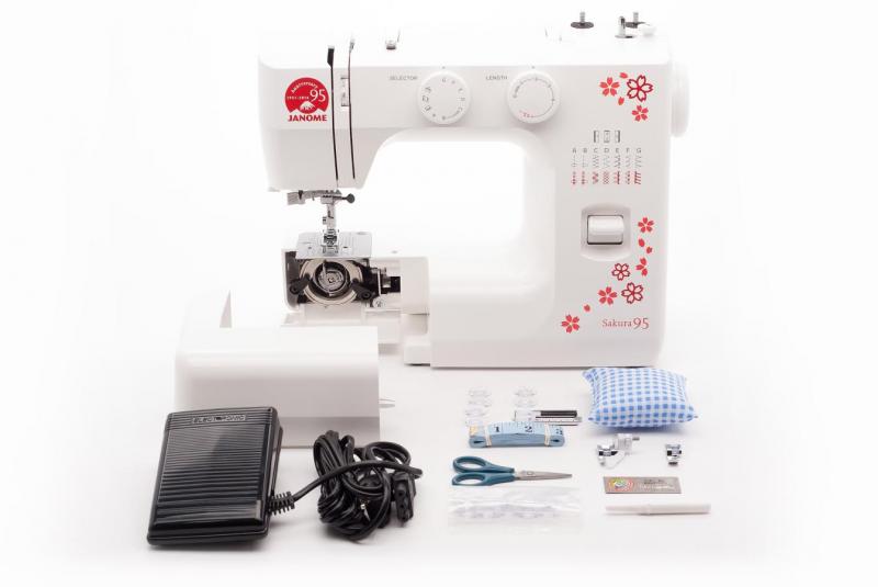Швейная машина Janome Sakura 95 - 12 видов строчек (19 операций), в комплекте 4 лапки. Челнок - вертикальный.Рекомендуем посмотреть
