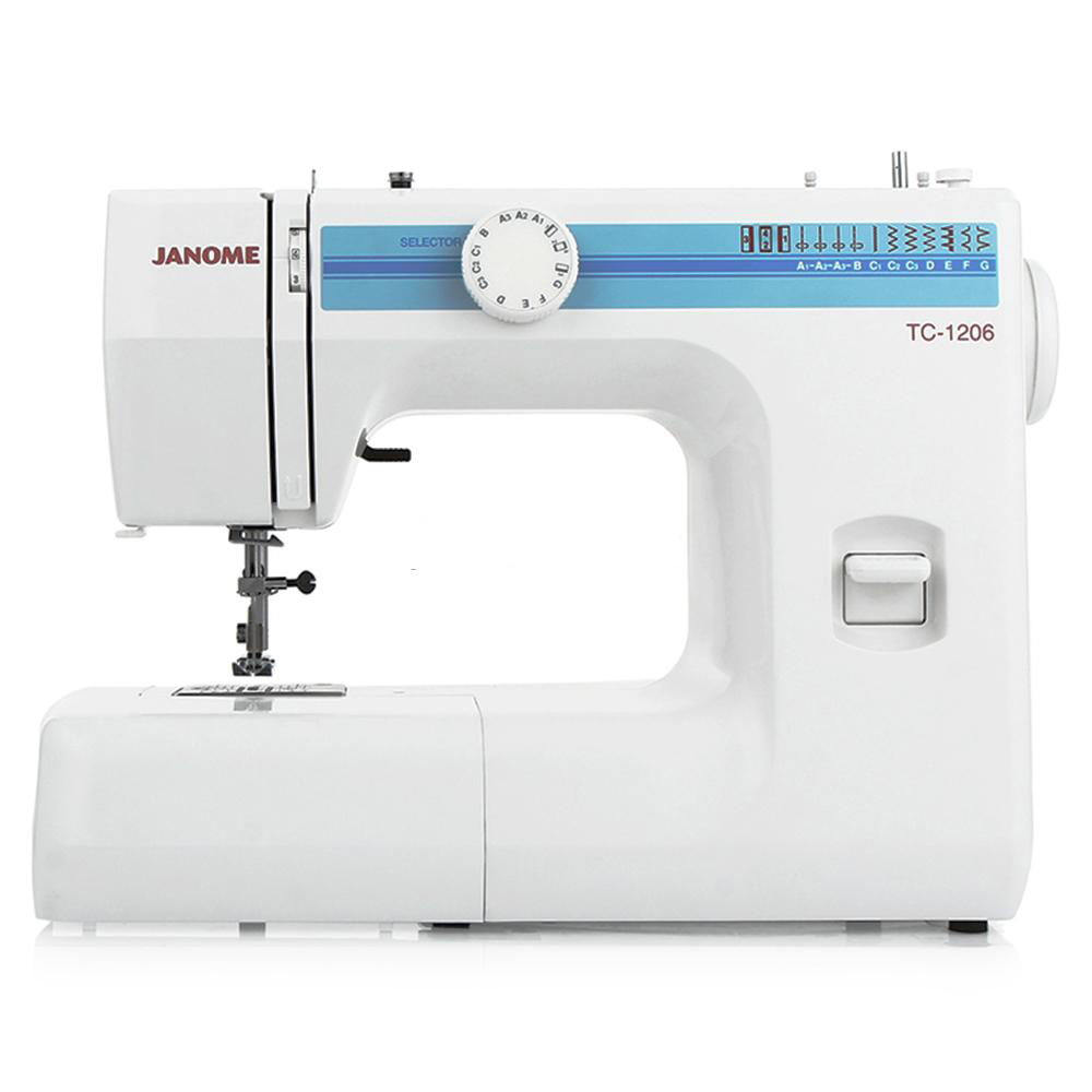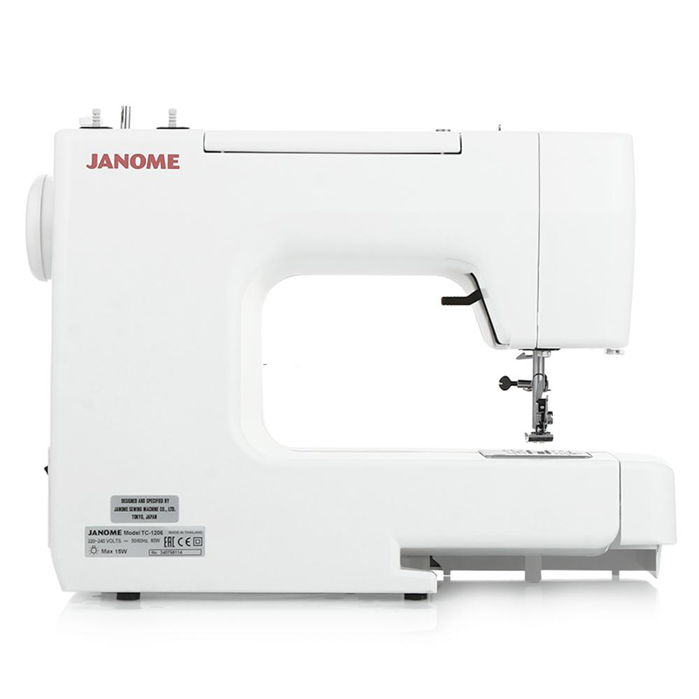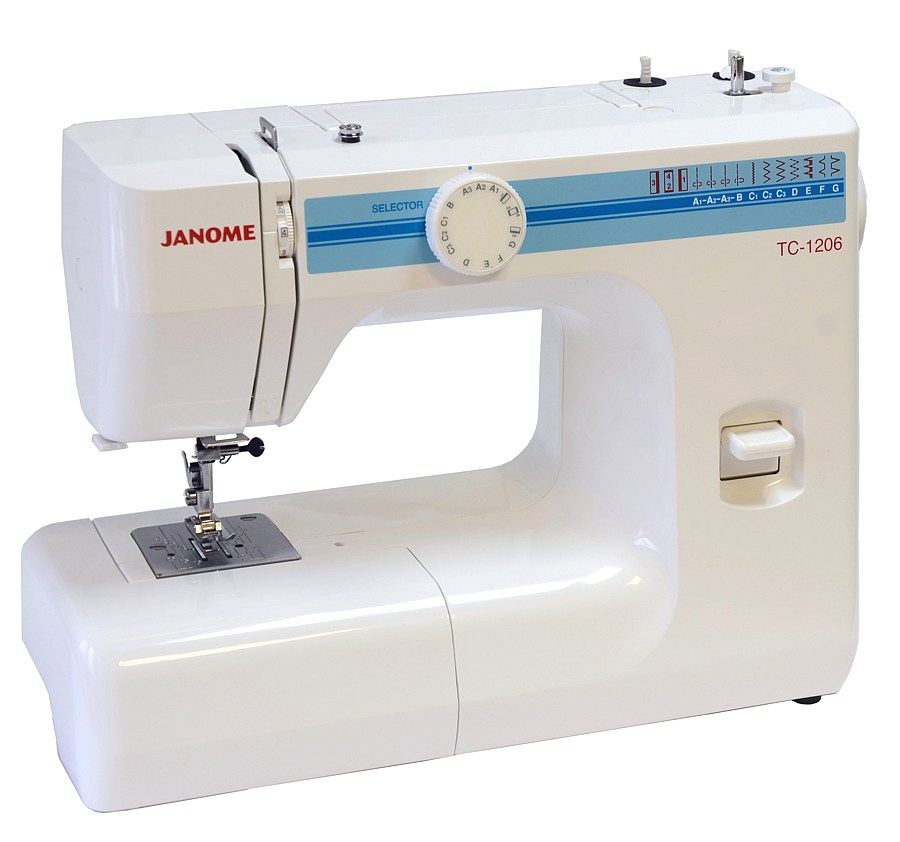 Швейная машина Janome TC 1206 имеет вертикальное челночное устройство, выполняет 6 строчек. В комплекте имеет 4 лапки.