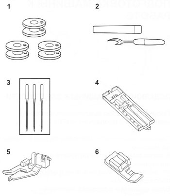 6 видов строчек (12 операций), в комплекте 4 лапки. Челнок - вертикальный.
