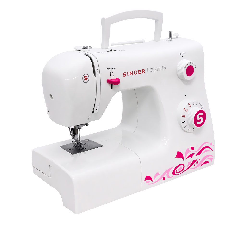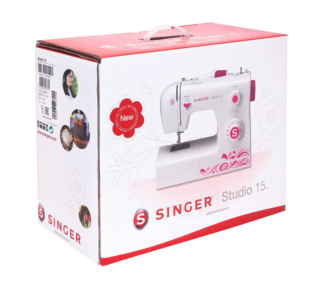Швейная машинка Singer Studio 15. Отличается от многих конкурентов стильным и современным корпусом. Особенности Singer Studio 15 - вертикальное челночное устройство, выполняет 8 строчек. В комплекте имеет 4 лапки. Отличается современным дизайном, возможностью плавной регулировки ширины, длины стежка.
